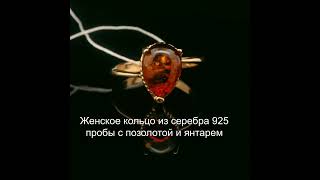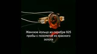 Кольцо из серебра 925 пробы с позолотой из красного золота и лимонным янтарем с уникальным включение