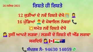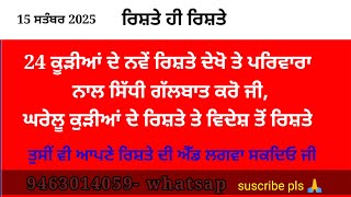 ਕੂੜੀਆਂ, ਮੁੰਡਿਆਂ ਦੇ ਨਵੇਂ ਰਿਸ਼ਤੇ ਦੇਖੋ ਸਾਰੇ ਨੰਬਰਾਂ ਸਮੇਤ ਜੀ 💥ਤੇ ਪਰਿਵਾਰਾ ਨਾਲ ਸਿੱਧੀ ਗੱਲਬਾਤ ਕਰੋ ਜੀ 12 ਸਤੰਬਰ