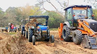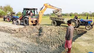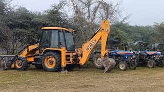 Jcb 3dx loading Mud in TATA Tippers Tractors Swaraj 855F New Holland 3630 Tractor 4x4 jcb Thar Truck