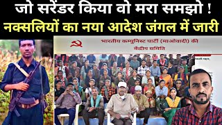 जंगल के नक्सलियों ने सरेंडर करने वाले नक्सलियों को दी जान से मारने की धमकी, नक्सली नेता ने दिया बयान