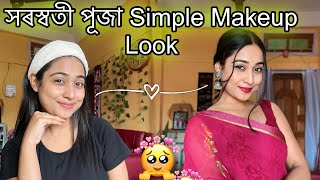 Simple makeup look😍✨|| Saraswati puja look🌸