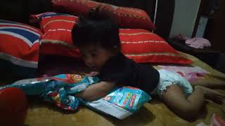 Yuvi playing with diaper packets