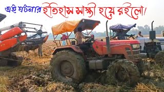 Mahindra Tractor stuck in deep mud rescue by Kubota harvester #farmar_life #Kubota_combine_harvester