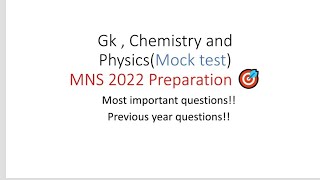 Hello aspirants....This channel is dedicated to you all who are preparing for MNS exam.