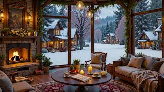 Quiet Winter Book Café Street❄️Cozy Fireplace Ambience & Soft Jazz for Reading, Study & Calm Evening