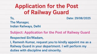 Application for the Post of Railway Guard | Job Application Writing | Railway Job Application in Eng
