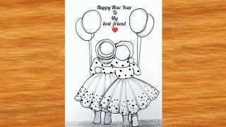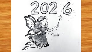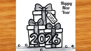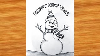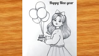 Happy New year Drawing very easy || Happy New year poster || Pencil Drawing for beginners || drawing