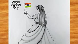 A Traditional girl holding tiranga Drawing || Pencil Drawing for Republic day easy || Girl Drawing |
