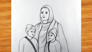 Chhote sahibzade with mata gujri ji Drawing || Pencil Drawing for veer bal divas || Chhote sahibjade