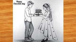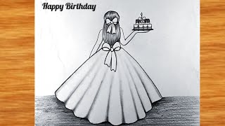 How To Draw A backside birthday girl holding cake || Happy Birthday Drawing for girl || Girl Drawing