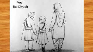 Mata gujri ji and chhote Sahibzaade Drawing || Veer bal divas spacial chhote Sahibzaade Drawing easy