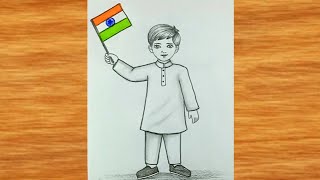 A boy holding flag drawing || Drawing for republic day easy || boy Pencil drawing easy ||Boy Drawing