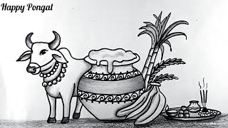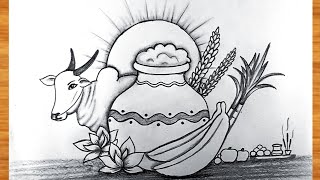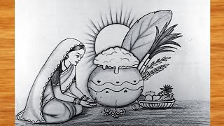 Happy Pongal Drawing || Pongal Festival Drawing easy || Pencil Drawing very easy || Pongal ka chitra