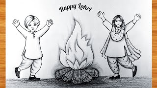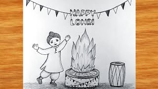 Lohri Festival Drawing || Happy lohri festival drawing || Pencil Drawing very easy || Lohri 2026 art