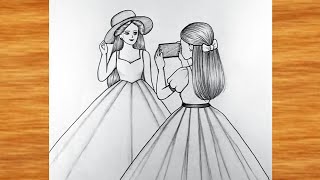 Four girl best friends / sisters drawing || best friends Drawing with pencil |BFF Drawing || sisters