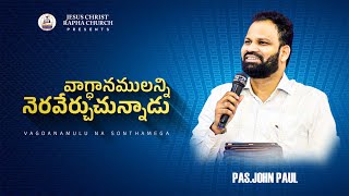 Welcome to the channel, Pastor John Paul Yalimanchili who is the founder of Jesus Christ Rapha Church, Bangalore and the President of 'Thy Word Ministries', Karnataka. He is highly anointed and chosen by the Lord to preach the Word of God in the world. So far he preached in around 40 countries. He mainly focus on Church Ministry in Bangalore and international ministry in America, Australia, England, Philippines, Malaysia, Singapore, etc. His speeches and prophecies are highly impacting in many people around the world. His TV Program 'Catch the Fire' is famous in Telugu. His main aim is to save the souls from sin. He received many awards in India and other countries too.