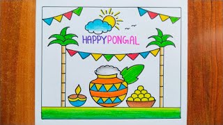 Pongal Festival Drawing / Pongal Drawing / Happy Pongal Drawing / Pongal Drawing Easy Steps / Pongal