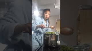 Cooking paksiw na saluyot and tortang talong