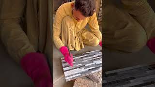 Modern Marble Tile Wall Design with Golden Patti Cutting ๐โจ#WallDesign #GoldenPatti #LuxuryLook