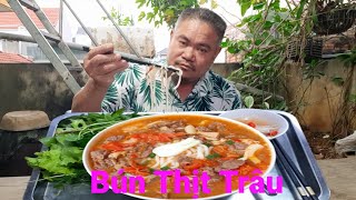 Rice noodles with buffalo meat and fertilized duck eggs. A delicious breakfast! | Nguyen Ngoc Bea...
