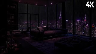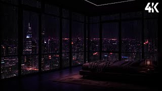 Luxury NYC Apartment at Night🌧️ Heavy Rain & City Lights for Deep Sleep & Relaxation | Rain Ambience