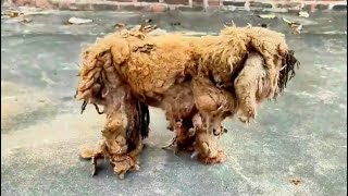 Abandoned at a construction site, the little dog was starving with 3 years of matted, untrimmed fur.