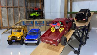 Ultimate RC Off-Road Challenge! Toyota MN82 Pickup Carrying A Motorbike & Toyota MN82s Extreme Ramps