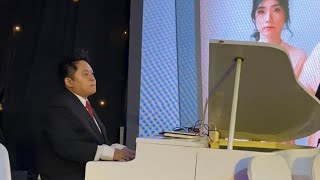 PoV pianist playing song Groom dance with Mother and bride dance with Father, wedding dance and kiss