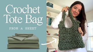 Turning a Bed Sheet into a Tote Bag??? (Easy Crochet Tutorial)