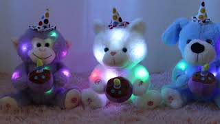 Glow Guards provide you adorable soft plush toys with many different images, such as unicorn, farm animals, ocean lives, pet animals wildlife and so on. You will certainly pick your favorite stuffed animals. The magic LED lights inside will bring your kids much fun and sense of safety when they sleep by themselves. In addition, the music attached is mostly sung by real people voice clearly, the kids can learn to sing with their special new friends. Glow Guards stuffed animals, guard your kids in darkness, give them sense of security and happiness.