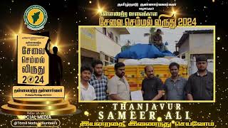 #THANJAVUR Sevai Chemmal Virudhu 2024 Tamil Nadu Volunteers #BestSocialworker | SAMEER ALI #awards