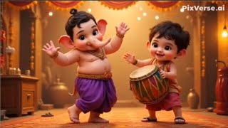 Little Ganesha and krishna #krishna #kanha#bappa#ganesh#cute#trending #viralvideo#dance#flute#little