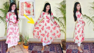 Convert old saree into gown| partywear full flare umbrella gown/kurti | full step by step tutorial 2