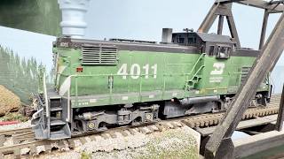 Part 142 - Four BN diesels & early BN era train runby #hoscale #modelrailroad #train #hobby #unicorn