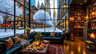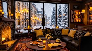 Chill Instrumental Jazz Music ☕️ Snowy Coffee Shop Vibes & Cozy Winter Street Ambience for Good Mood