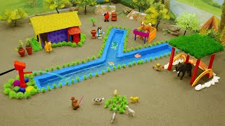 DIY Farm Diorama with mini house for cow,horse | cowshed -horse house | concrete mixing machine #k11
