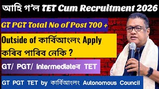 GT PGT Advertisement 2026 🚨 TET cum Recruitment, TCR 2.0 Advertisement Update/ Assam GT PGT TET 2026