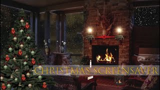 Cozy Warm Christmas Night Ambience, Crackling Fire Sound Falling Snow. 8 Hours Screensaver for Sleep