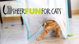 Engage your cats natural instincts to hide, hunt, stalk and pounce! Playtime will never be the same! Old cat toys become more interesting when seen "through" Sheer Fun! Made in USA! Small business 👩🐱Shop Amazon or Website links below!
