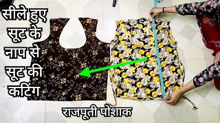 Rajputi suit cutting/ Rajputi kurti cutting /राजपूती सिले हुए सूट से नाप लेकर सूट की कटिंग केसे करे।