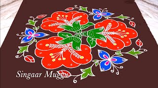 Simple and easy flower rangoli with 15X8 dots | Chukkala muggulu | Pulli kolam | Rangoli design