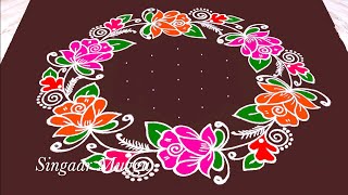 Rose flower rangoli design 15X8 dots | Sankranthi special Flower muggulu |how to create flower kolam