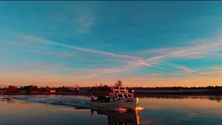 Mussel boats heading out into the sunrise