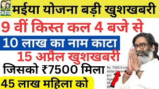 16 अप्रैल | मईया सम्मान खुशखबरी: कल से 9 वीं किस्त ₹2500 मिलना शुरू |9th Installment of Maiya Yojana