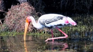 Painted Stork Shakes Water To Find Fish