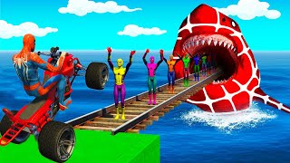 الأبطال الخارقين على القضبان دوامة قمع جسر +🚴♂️ SPIDER MAN!on Motorcycle in Spiral Bridge Stunt Rid