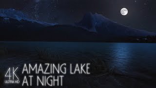4K Emerald Lake in Full Moon Light - Calm Dark Screen Video with ASMR Night Sounds for Restful Sleep