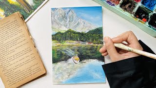 Gouache painting for beginner | বাংলায় ছবি আঁকা । কিভাবে জলরঙে ছবি আঁকবো ? Easy watercolor painting