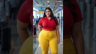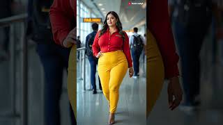 Bold & Beautiful in Red Shirt and Yellow Pants Travel Queen Vibes.#short#airport#dubaiprincess#trend