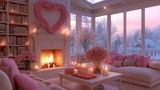 Romantic Valentine’s Ambience❤️Calm Piano Music, Crackling Fireplace Sounds for Relaxation and Peace